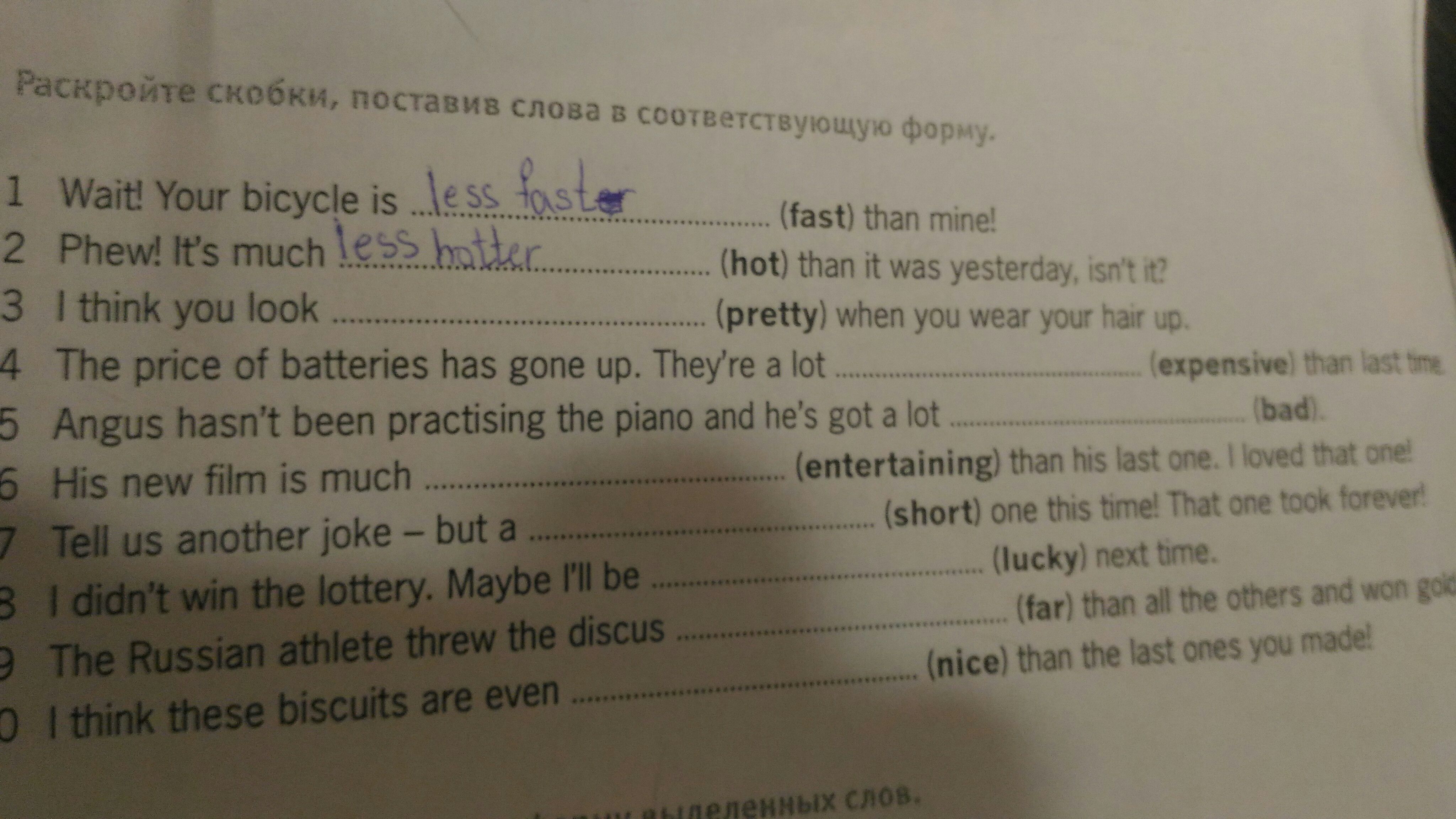 2 hotter ( Фух! Сегодня жарче. чем вчера)
