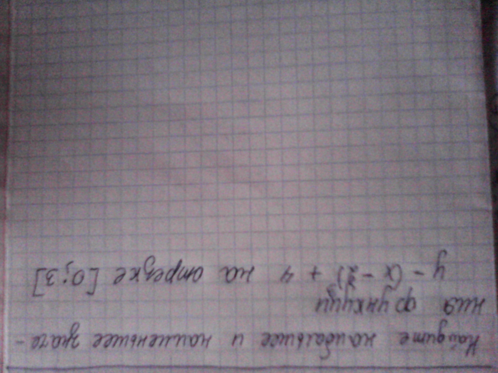 Функция y=x^3 - возрастающая на всей числовой прямой⇒y=(x-2)^3 тоже возрастающая (график второй функции получается из графика первой смещением на 2 вправо)⇒y=(x-2)^3+4 тоже возрастающая (теперь график поднялся на 4). А раз так, наибольшее значение достигается в самой правой точке - в точке x=3, а наименьшее значение достигается в самой левой точке - в точке x=0.