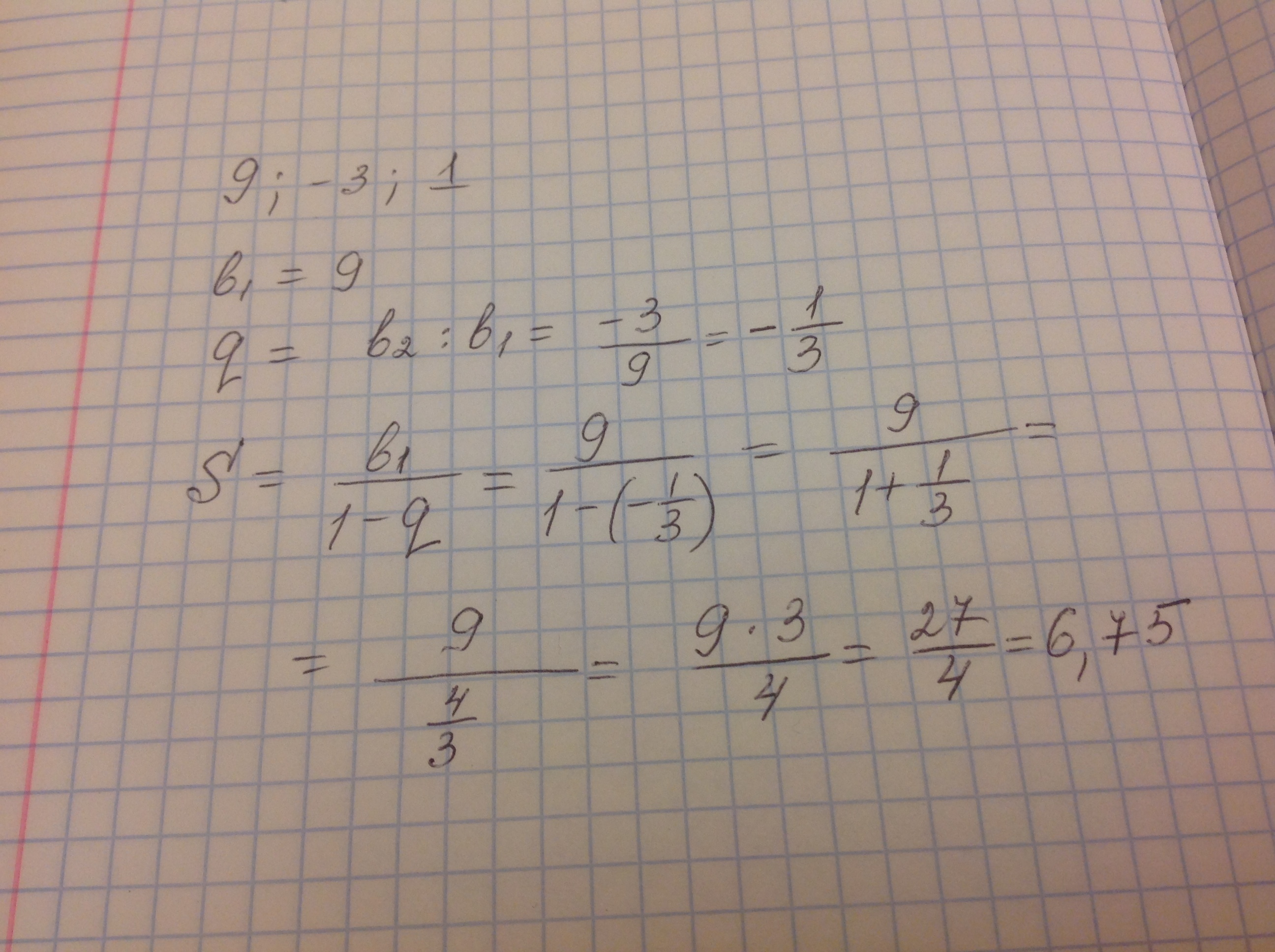 Найдите сумму бесконечно убывающей геометрической прогрессии 9; -3; 1; ...;