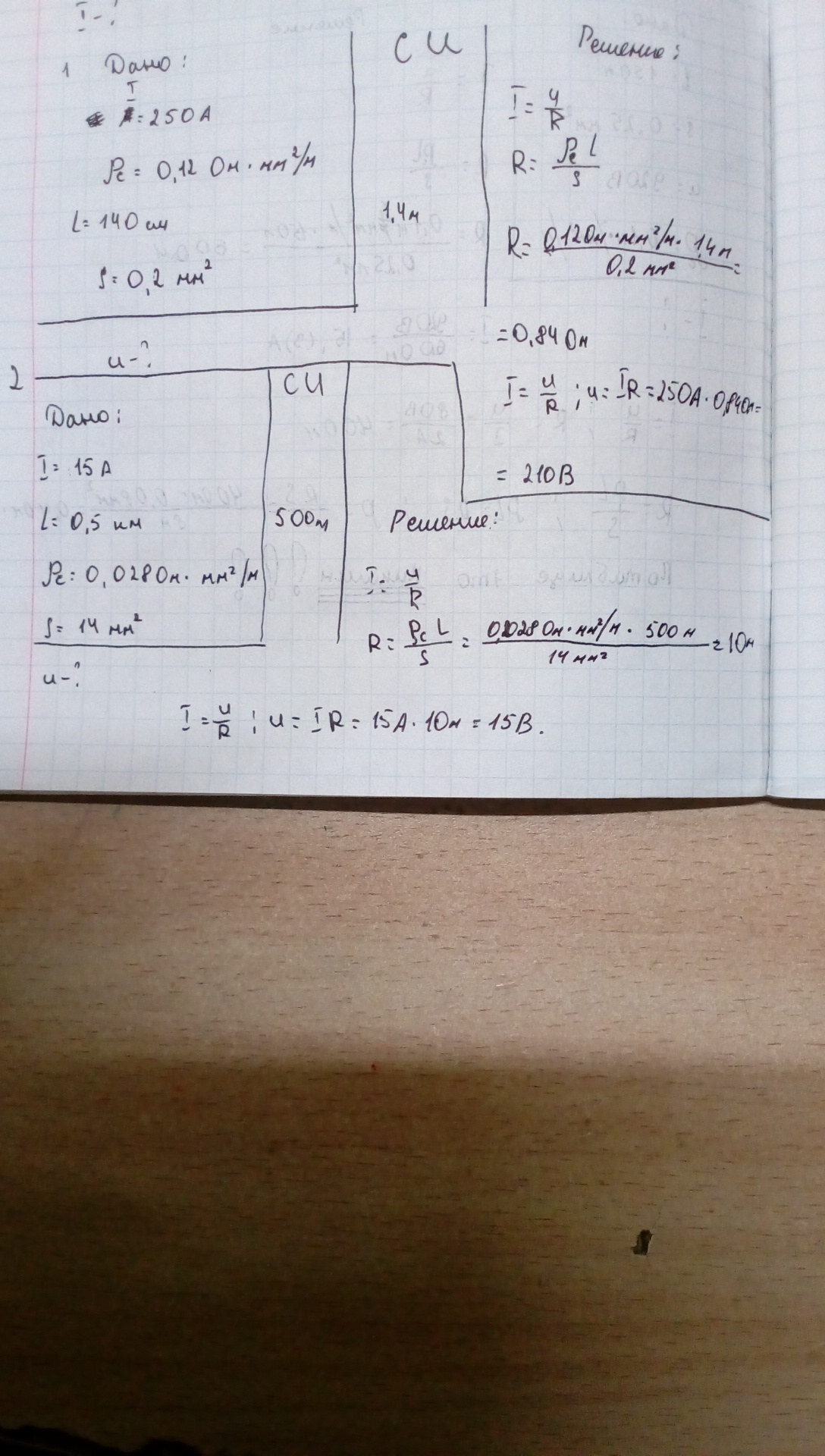 2. Рассчитайте напряжение на концах линии электропередачи длиной 0,5 км при силе тока в ней 15 А. Если провода , изготовленные из алюминия имеют площадь поперечного сечения 14мм^2