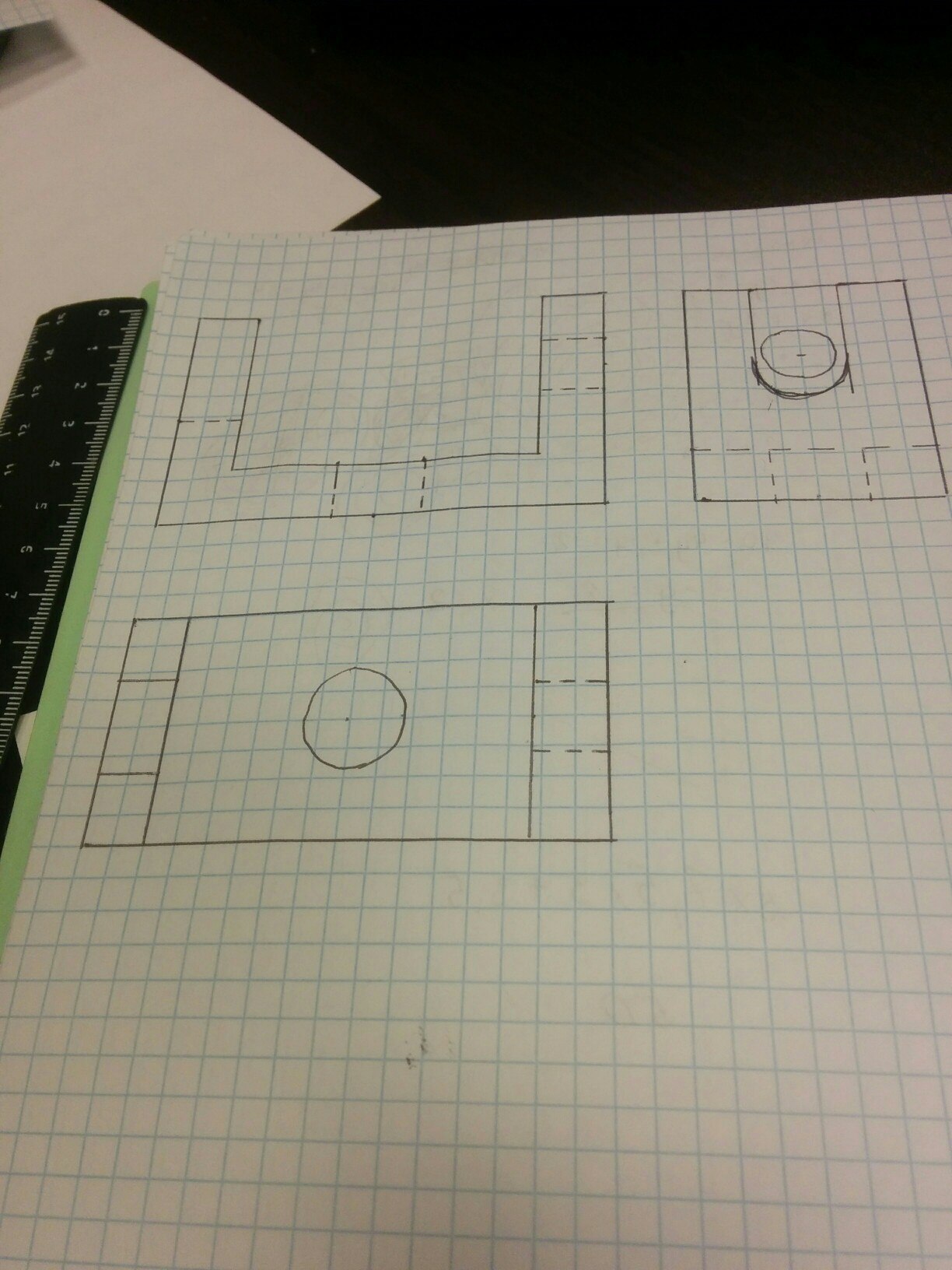 нужно начертить 3 вида.главный вид,вид сверху,вид слева.