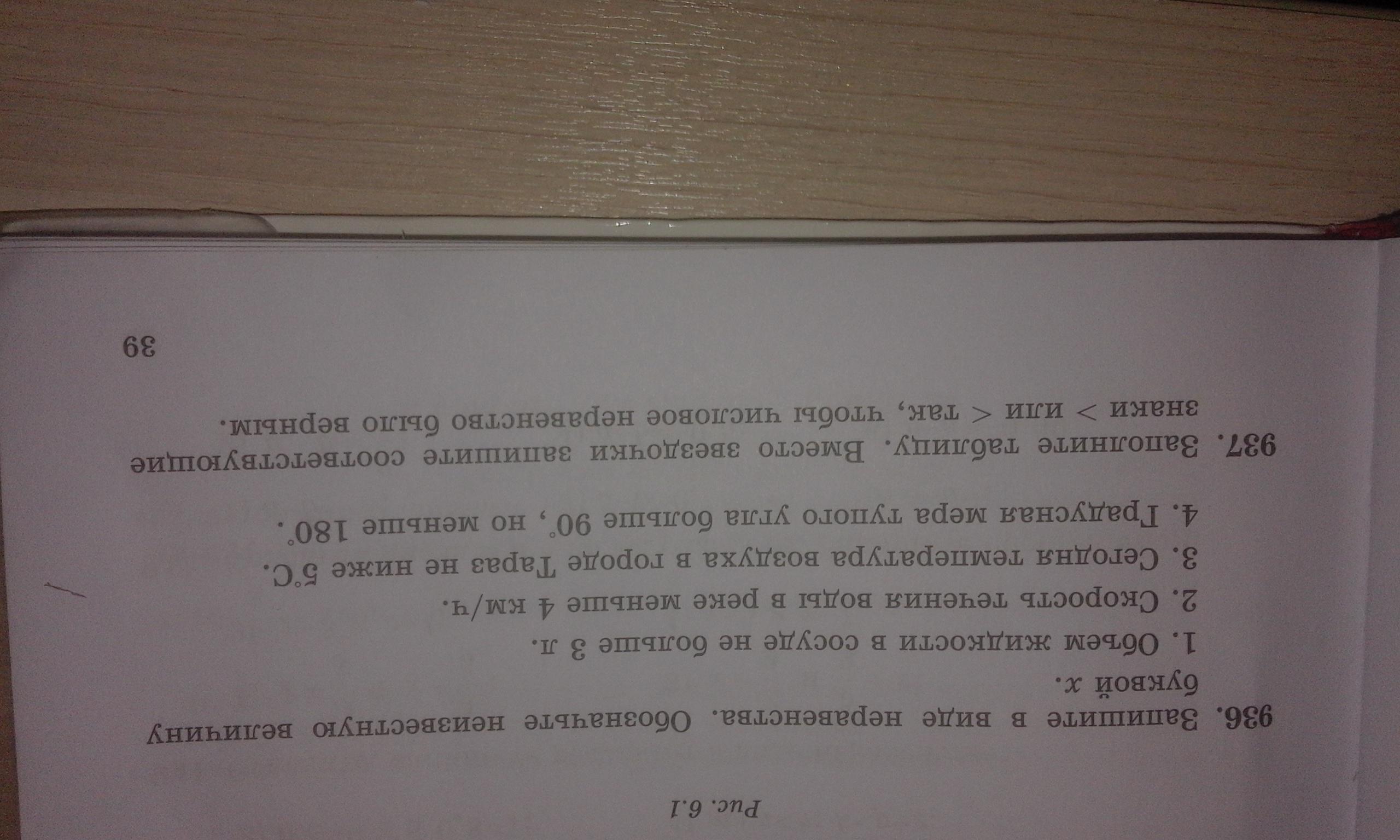 1) х ≤ 3л 2) х < 4 км/ч 3) х ≥ 5 С 4)90° < х < 180°