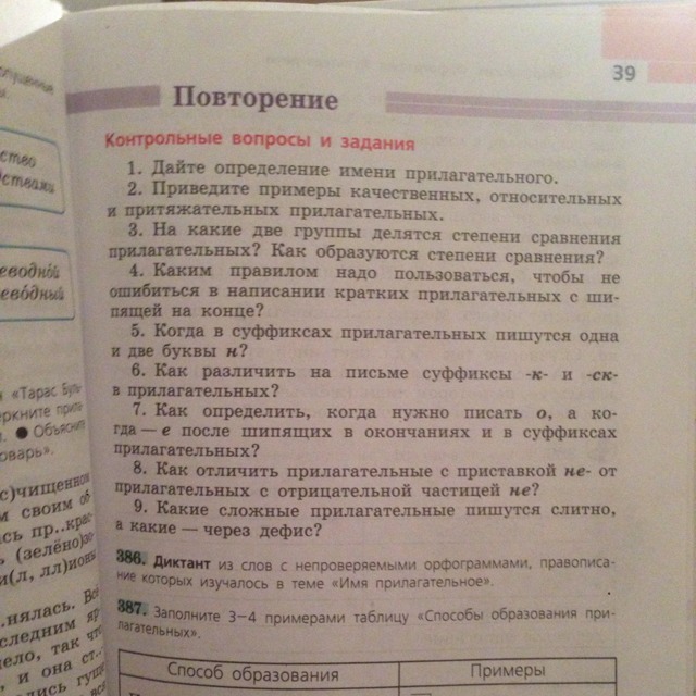 1 Имя прилага́тельное — самостоятельная часть речи, обозначающая непроцессуальный признак предмета и отвечающая на вопросы «какой?», «какая?», «какое?», «какие?», «чей?». В русском языке прилагательныеизменяются по родам, падежам и числам, могут иметь краткую форму.
