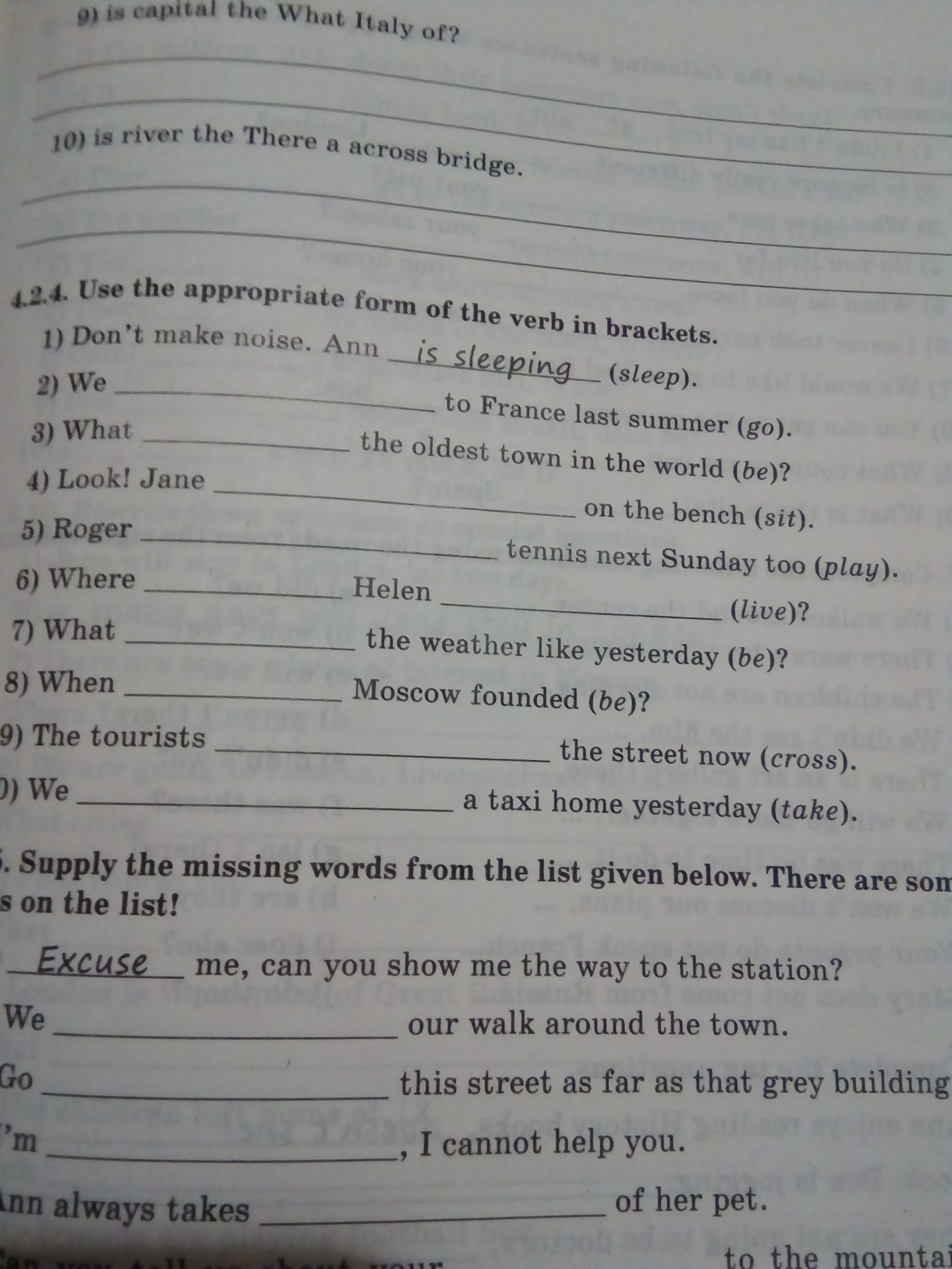 4)is sitting