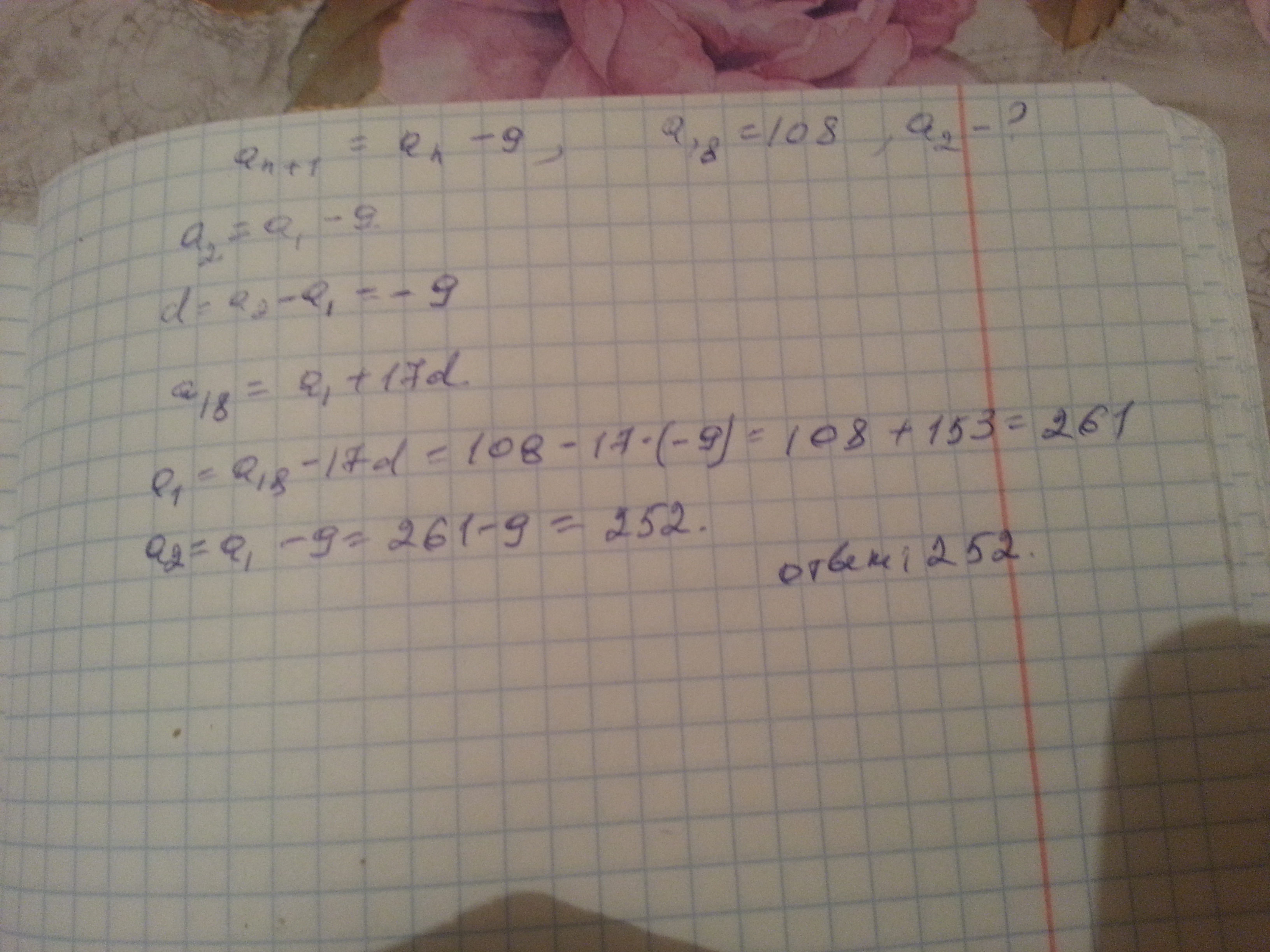 Арифметическая прогрессия задана условиями An+1=An−9 , a18=108 . Найдите a2.