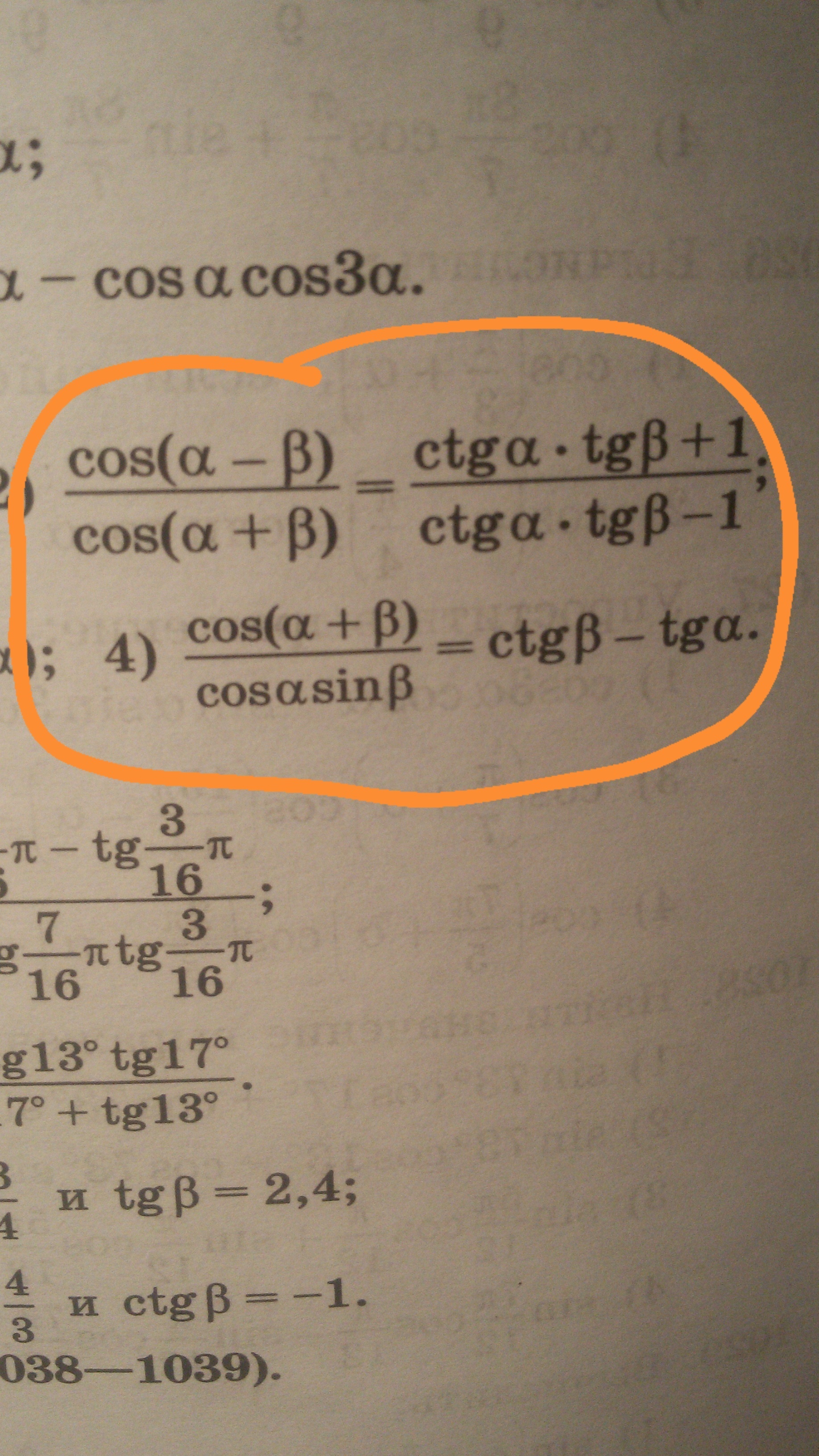 Если же мы хотим тождество, в которое входит левая часть, то правую нужно поменять на (ctg αctg β+1)/(ctg α ctg β -1)