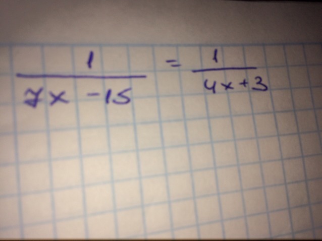 1/(7х-15)=1/(4х+3) (умножим на (7х-15)(4х+3))