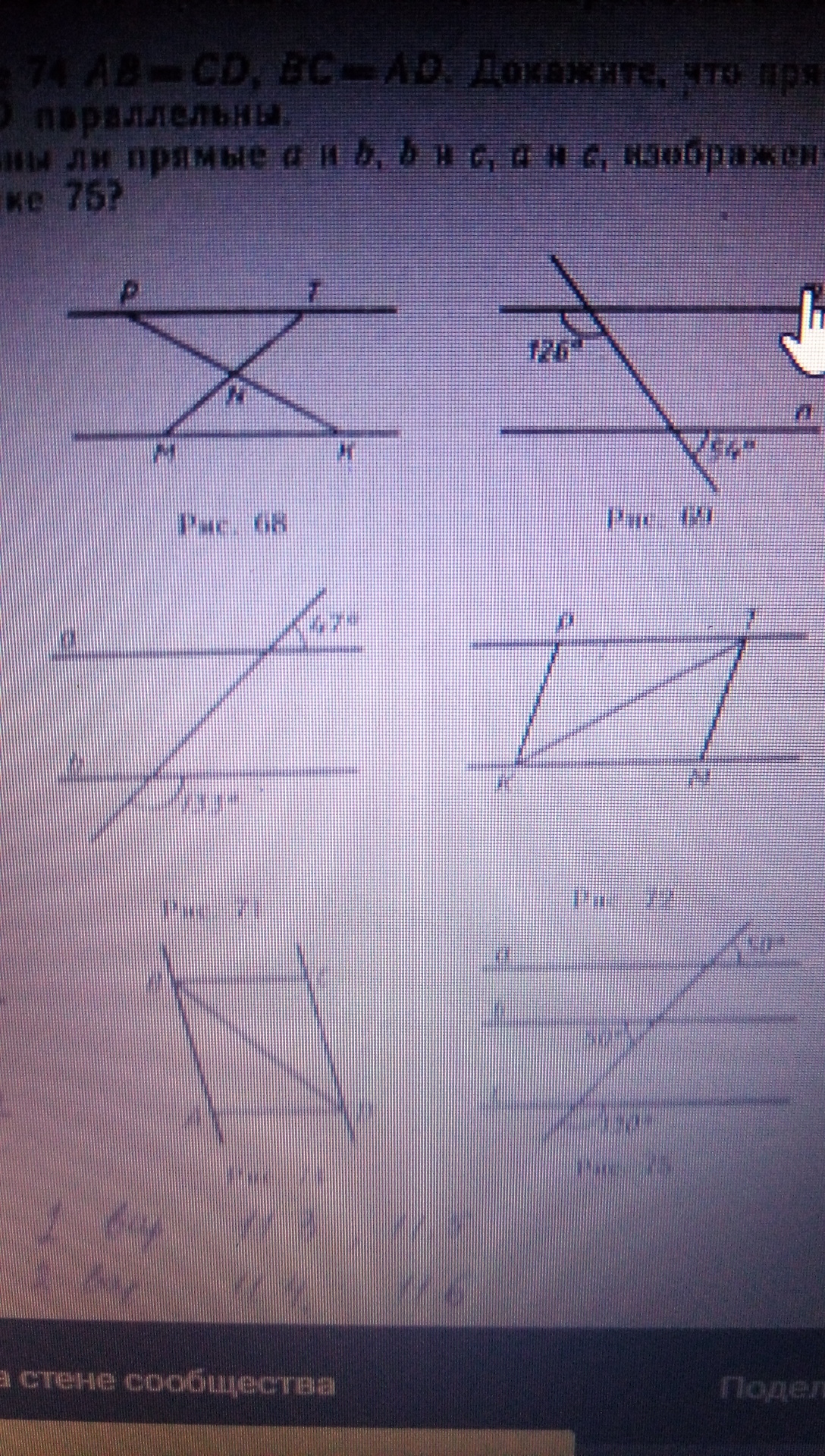 1) Параллельные ли прямые a и b изображенные на рисунке 71