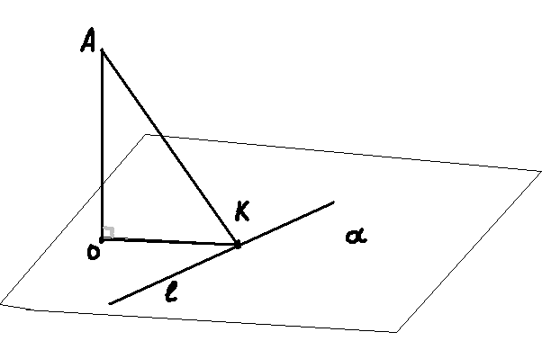 Пункт О проекция точки А, ОК- расстояние то О до прямой L , К - пункт пересечения ОК и L,