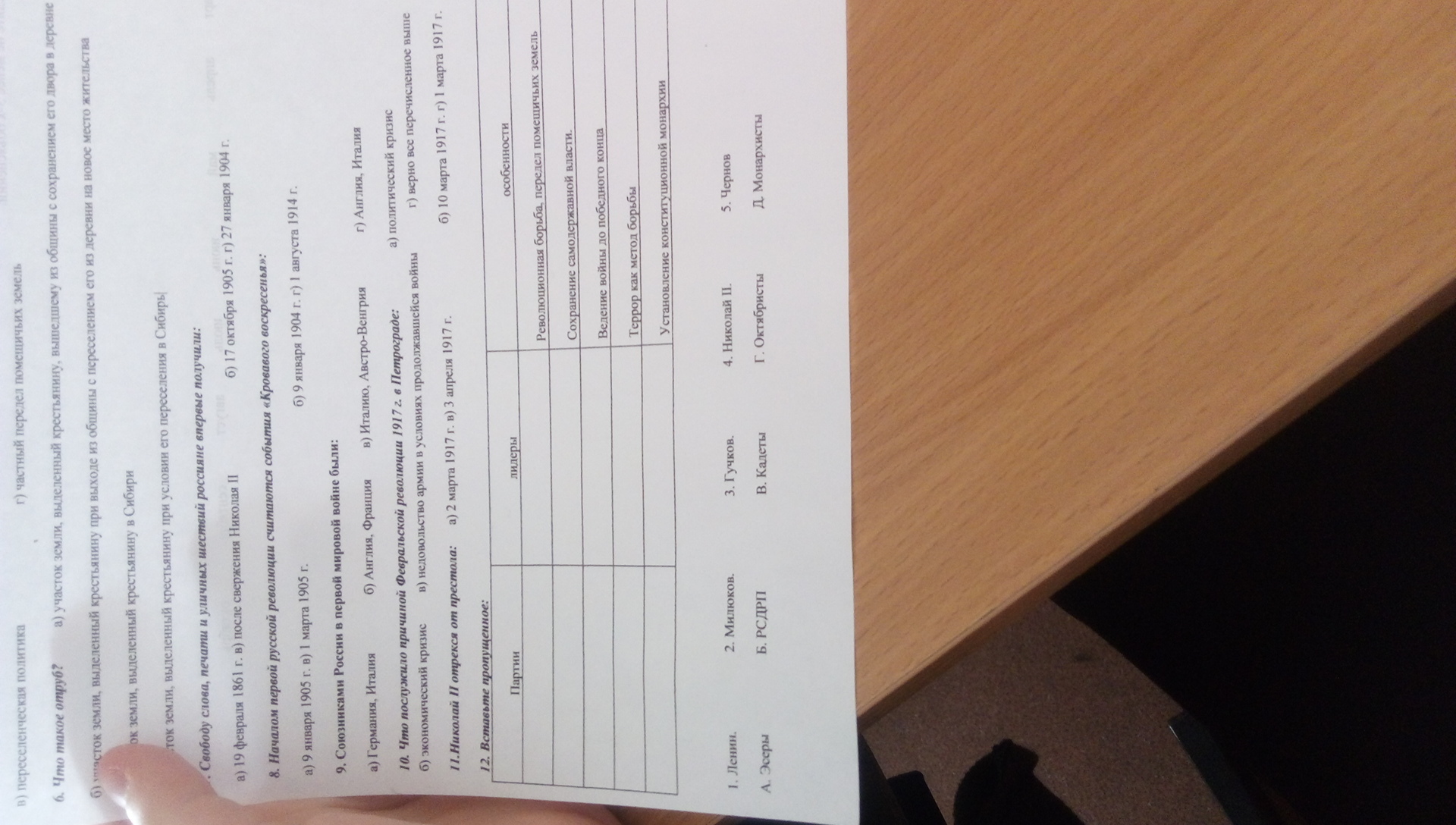 Эссеры чернов, рсдрп ленин, кадеты милюков, октябристы гучков, монархисты николай. Хотя эт невозможно, ибо его свергли, а за монархистов шел грингмут/. Мда
