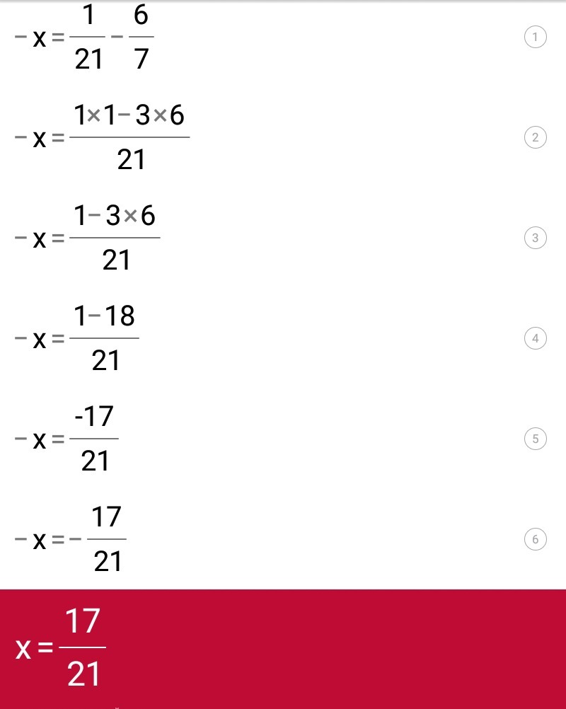 х=6/7 -1/21