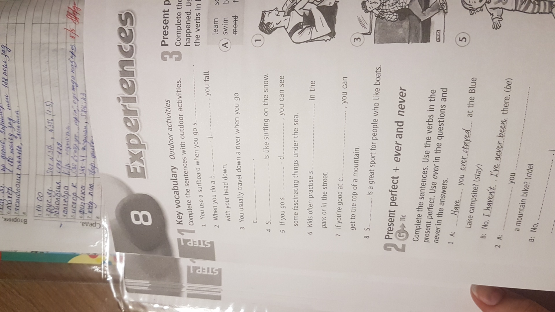 1 surfing 2 bungee jumper 4 snowboarding 5 scuba diving 6 skateboarding 7 climbing 8 sailing