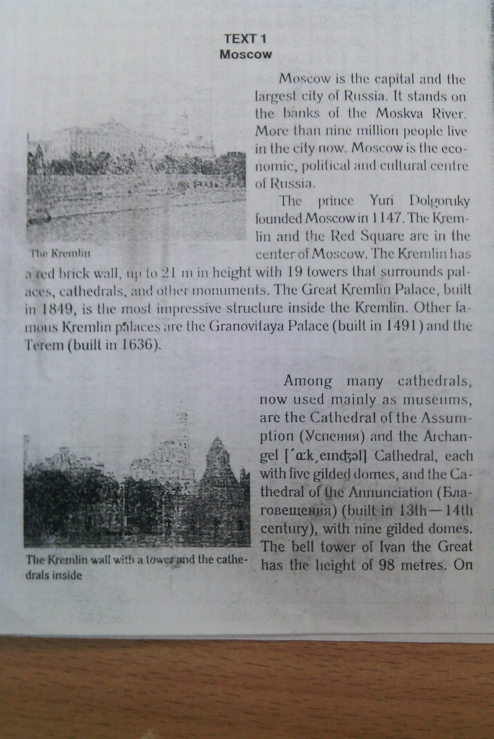 Текст 1МоскваМосква (столица икрупнейшие города o! России, он стоит нана берегу Москвы-реки,Живут более девяти миллионов человекв городе сейчас. Москва-ЭКО-номи, политическую #и! культурный центр#А! Россия.он князь Юрий Долгорукийосновал Москву в I147. КремльЛин и Красная площадь находятся вПлиточный Кремляцентр o! Москва. Кремлькрасной кирпичной стеной, до L м в высоту с 19 башнями (Хэл окружает приятельтузы, соборы, и! другие inonumments. Большой Кремлевский Дворец, построенныйв 1819 году, является наиболее впечатляющим структура внутри Кремля. Другой ла-Мос Кремлевские дворцы (Грановитой Дворец (построен в 1491) и(Терем (построен в I636)соборы,сейчас используется в основном как musciims,Собор такой мысли-потребленияи Ар Чанкаждыйжить с позолоченными куполами, и Са-собор, евангелическо-лютеранская (он Благовещения (была-говецени1) (построен в 13-века), с девятью позолоченными куполамиБел башня! (Иван ВеликийКремлевская стена с башней и со - имеет высоту 98 метров. Наdrals внутри.
