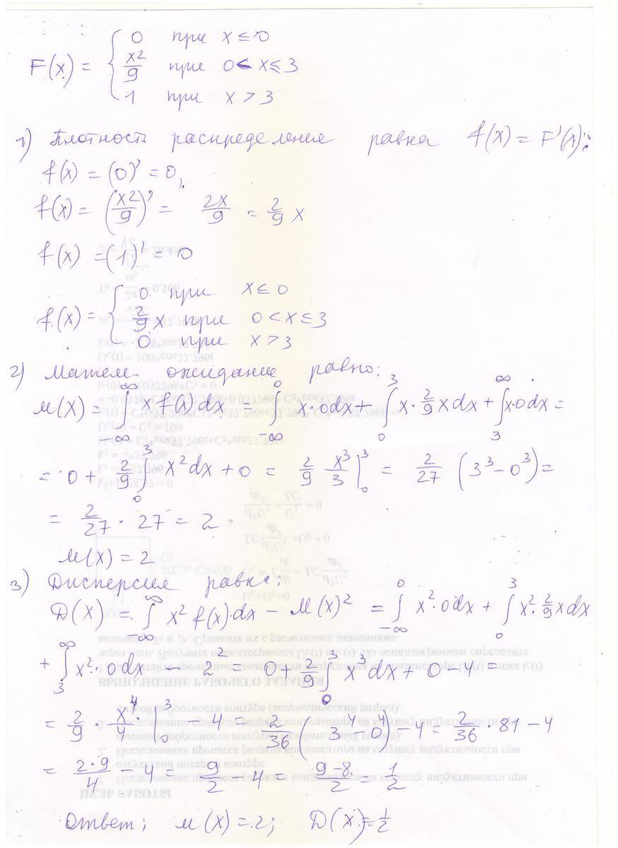 Випадкова величина X задана функцією розподілу F(x). Знайти щільність імовірностей, математичне сподівання і дисперсію випадкової величини.