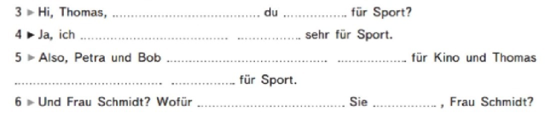 6. Und Frau Schmidt? Wofür interessieren Sie sich, Frau Schmidt?