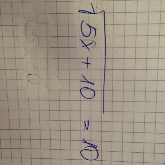 Все возводим в квадрат и получаем: 5x+10=100; 5x=90; x=18
