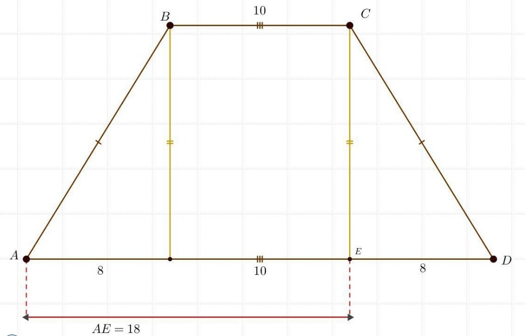 Высота равнобедренной трапеции, проведённая из вершины C, делит основание AD на отрезки длиной 8 и 18. Найдите длину основания BC..