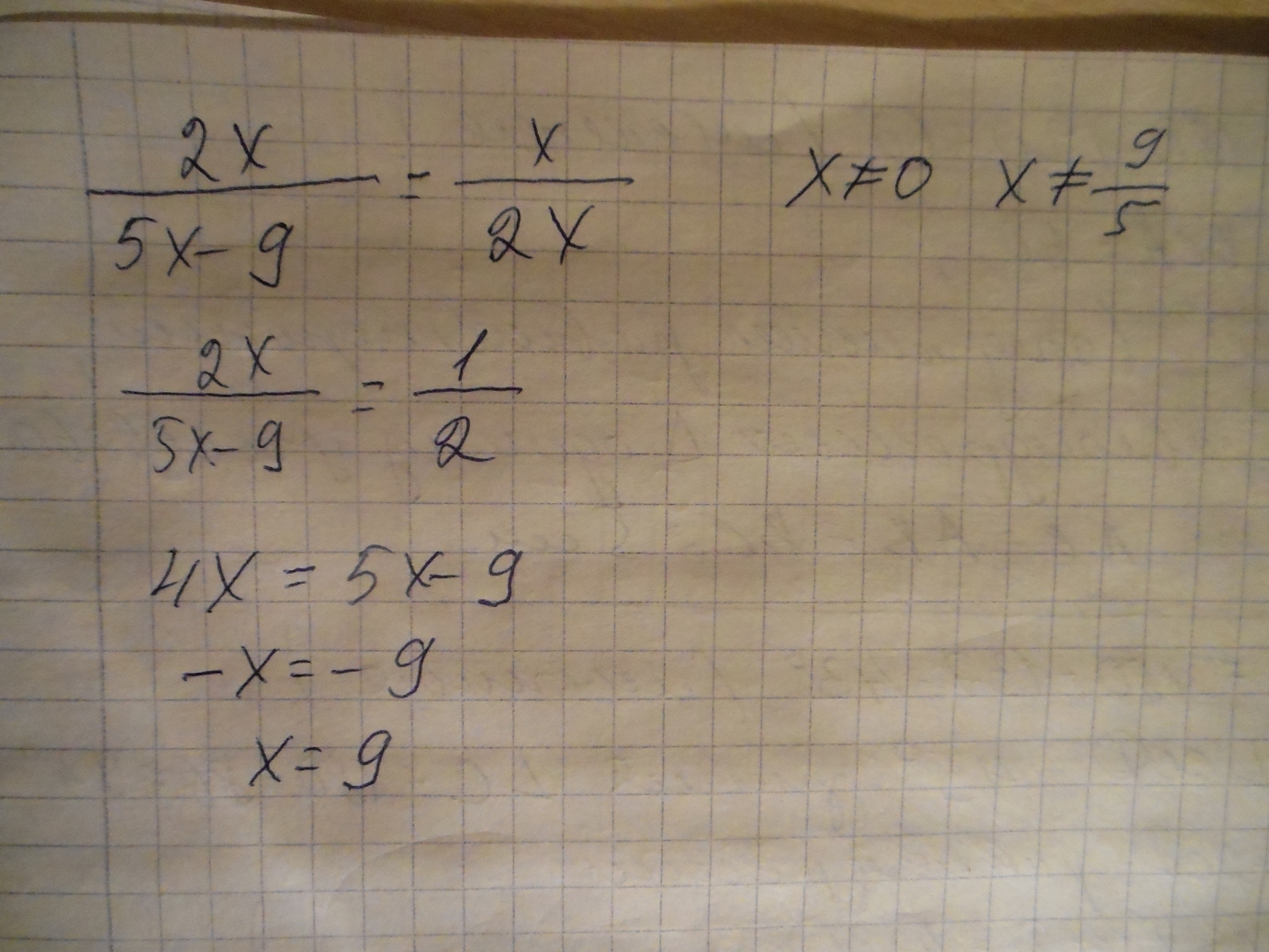 Найдите все значения x при которых значения выражений 5x-9; 2x; x в указанном порядке составляют геометрическую прогрессию.