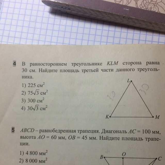 75 корень из 3, так как площадь через сторону S=(a^2корней из 3/4),потом делишь на 1/3