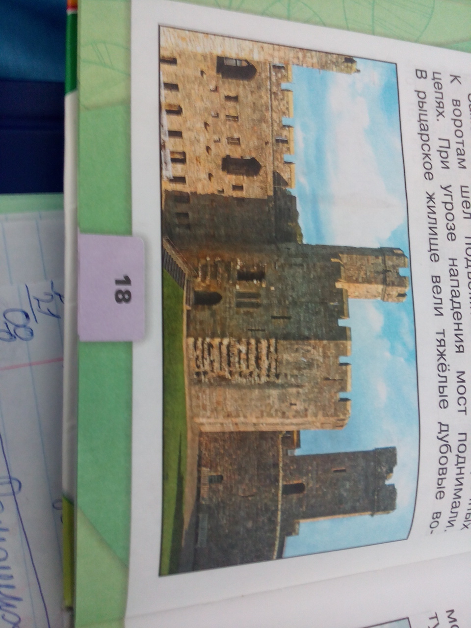 один раз я пришел домой там я поел потом я заглянул в книжку окружающего мира и увидел замок дальше уже легко сам додумаешь...