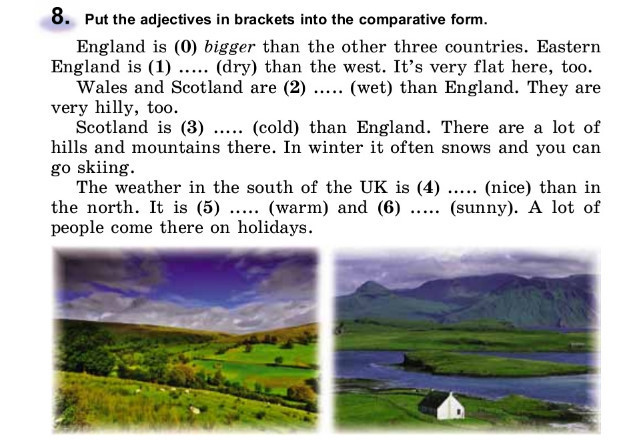 1. drier 2. more wet3. colder4. nicer5. warmer6. sunnier