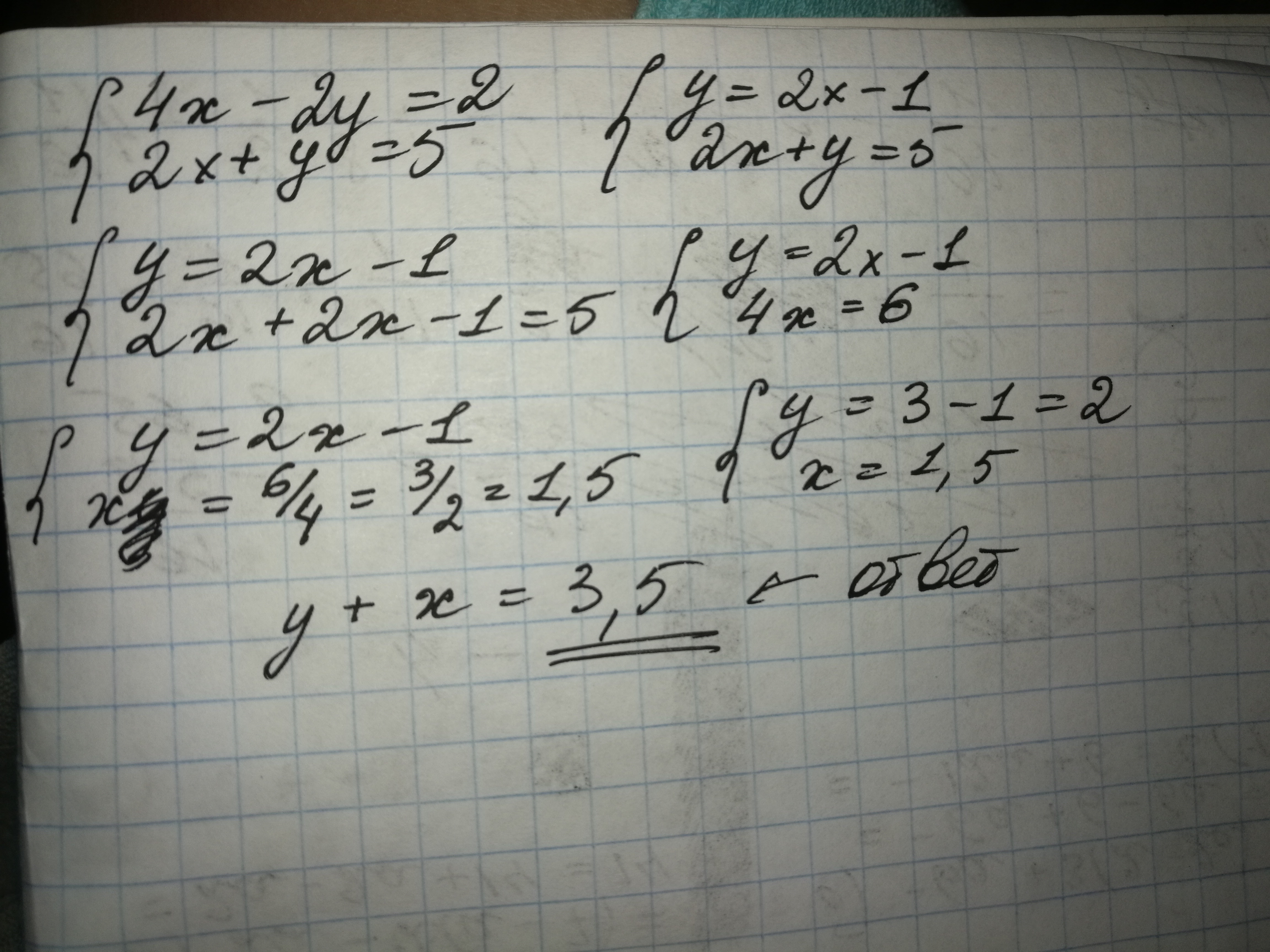 сумма решений системы это 3,5?