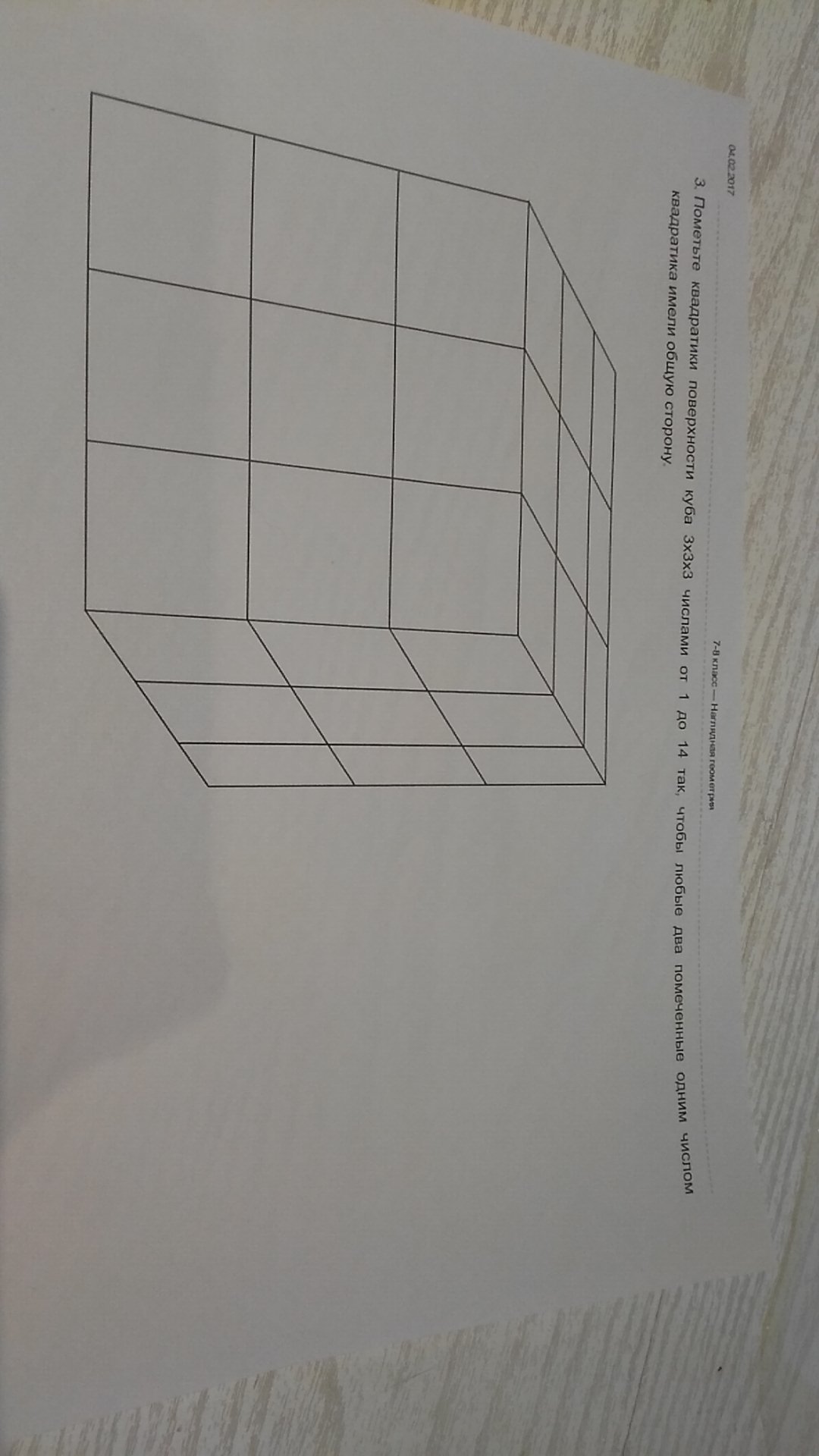 Я постарался сделать наглядно. Если присмотреться, то у каждой пары квадратов с одинаковыми числами есть общая сторона. У квадрата с числом 14 нет пары.