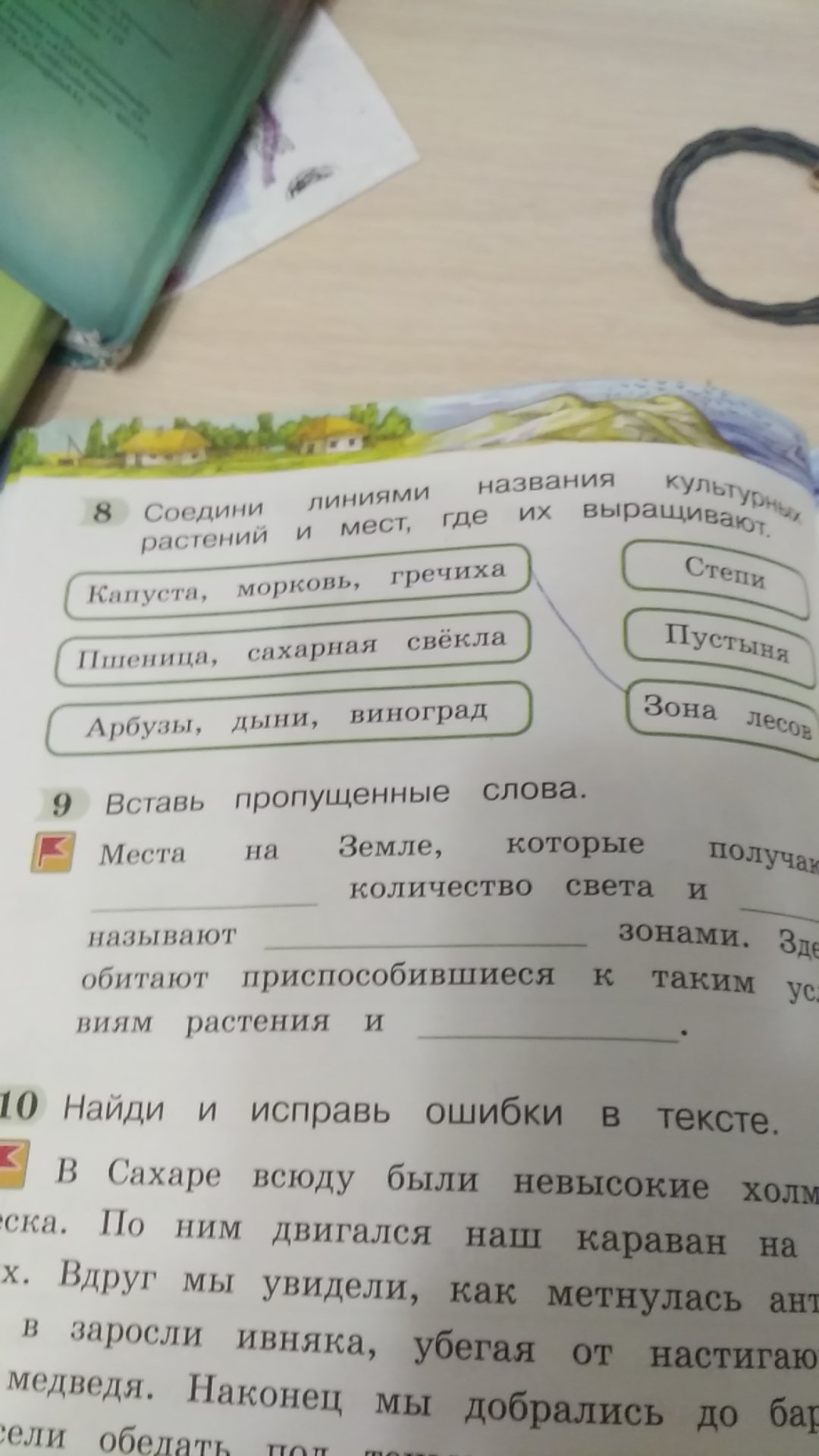 соедини линиями названия культурных растений и мест где их выращивают это восьмое задание . Заранее спасибо