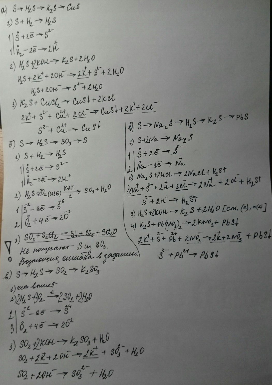 Г) сера- сульфид натрия- сероводород- сульфид калия-сульфид свинца( || )