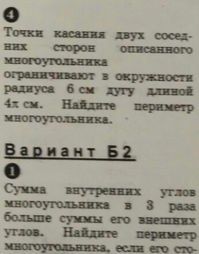 2. 62,35 см. Описанный многоугольник это треугольник. Сначала вычисляем длину окружности радиусом 6 см. Потом делим ее на 4пи см, получаем 3. Потом через косинусы или тангесы находим сторону треугольника. Можно также по теор. Пифагора, тогда периметр получится 36*