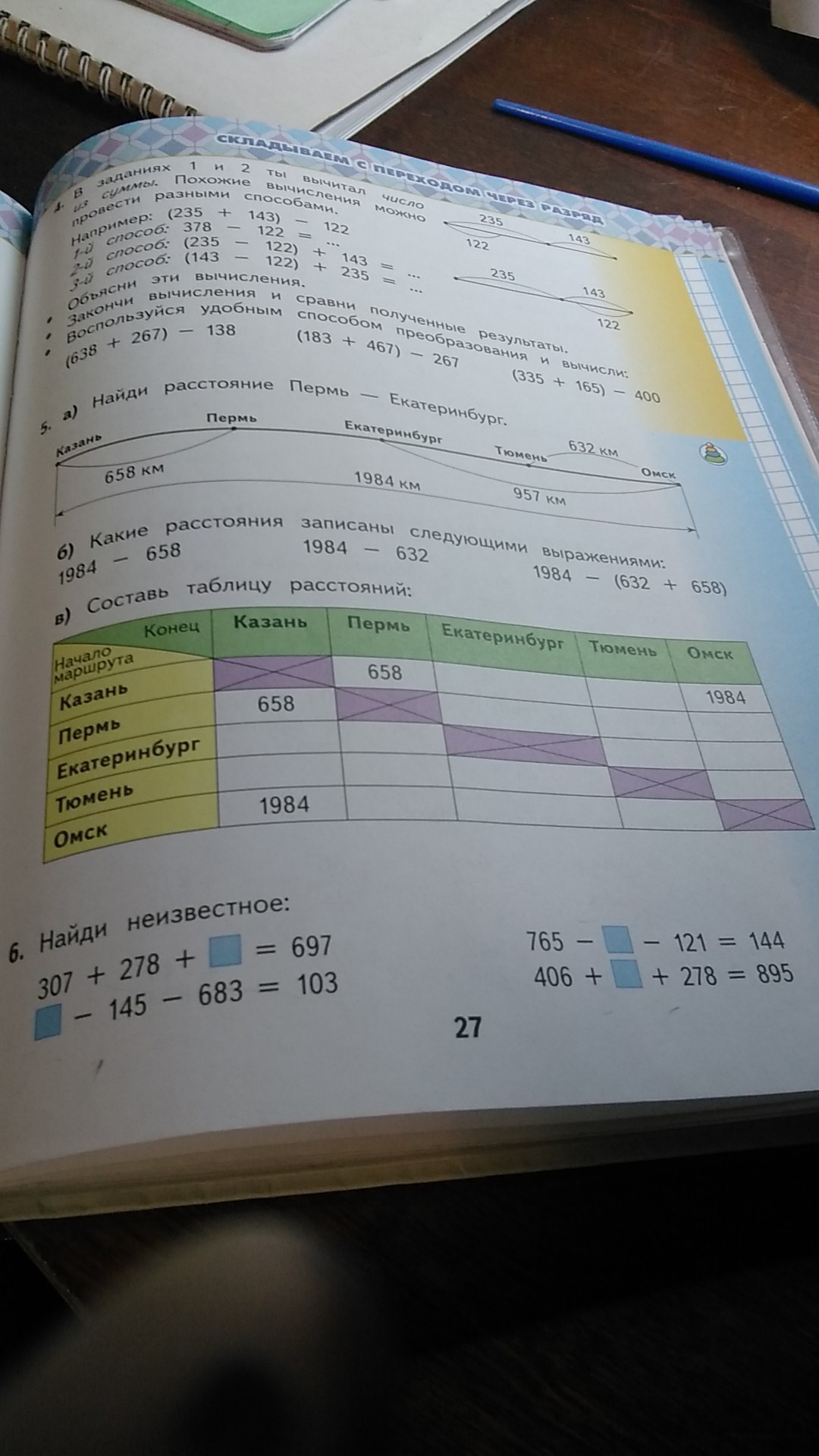 1)1984-(975+658)=351 км между пермью и екатеренбургом