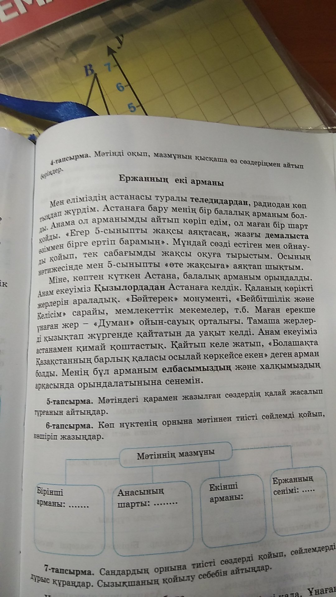 Я слышал много о нашей столице в телевизоре и радио. Моя мечта детства - побывать в Астане.Я пробовал рассказать об этой мечте маме, она поставила мне одно условие. "Если ты закончишь 5 класс на хорошо, на летних каникулах пойдем вместе". Услышав эти слова я оставил игры и старался хорошо учится. В результате я закончил 5 класс на "отлично".