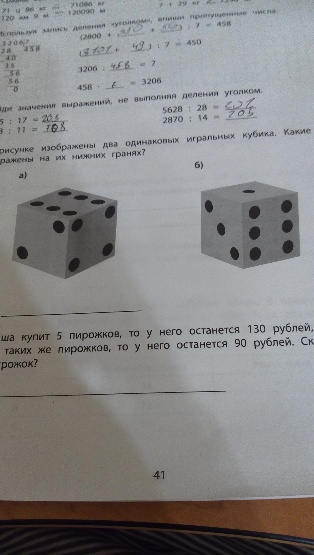 на рисункн изображены два игральних кубика . Какие числа изображены на их нижних гранях ?
