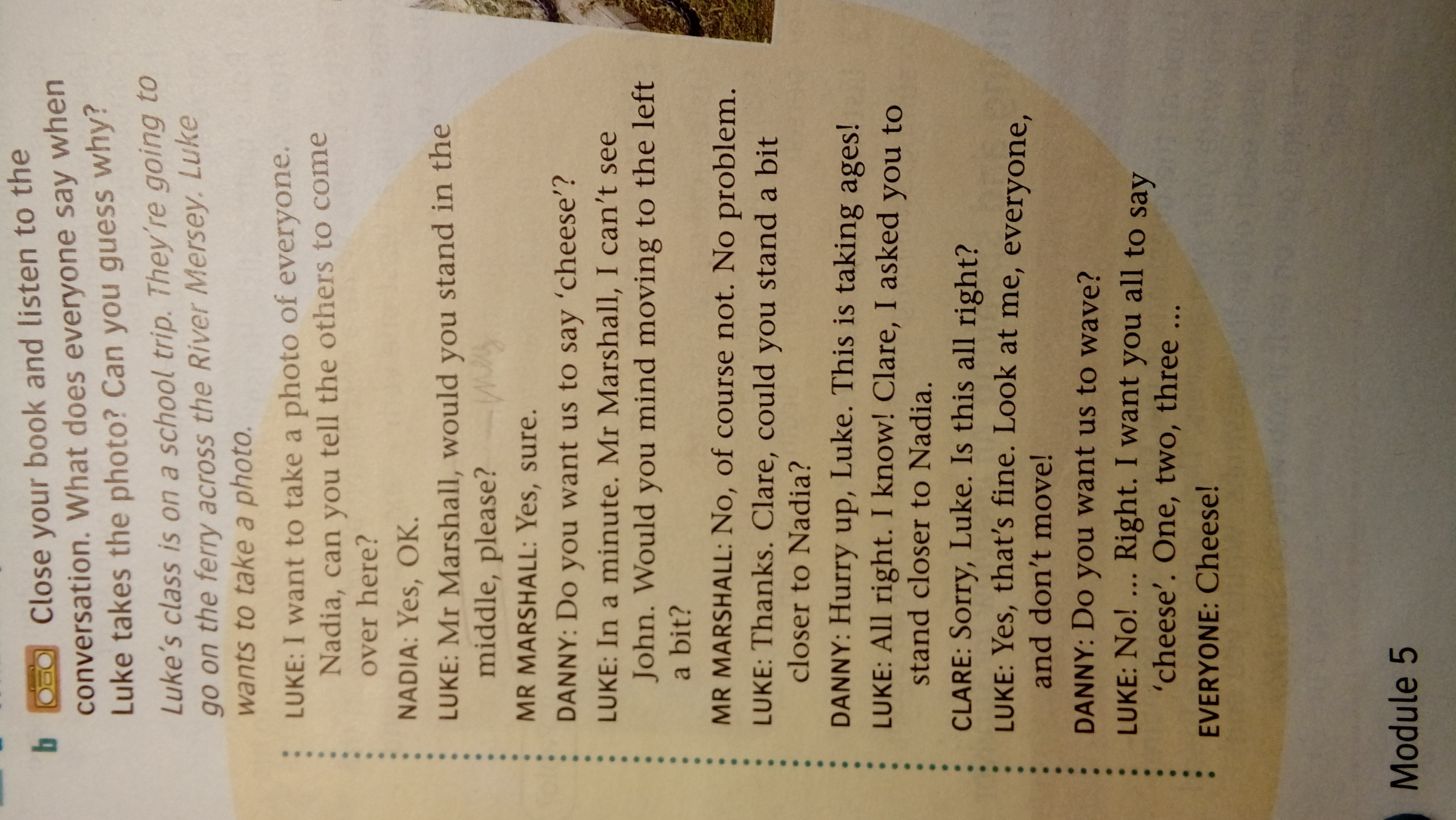 Danny asked Luke if Luke wanted them to say ‘cheese’.