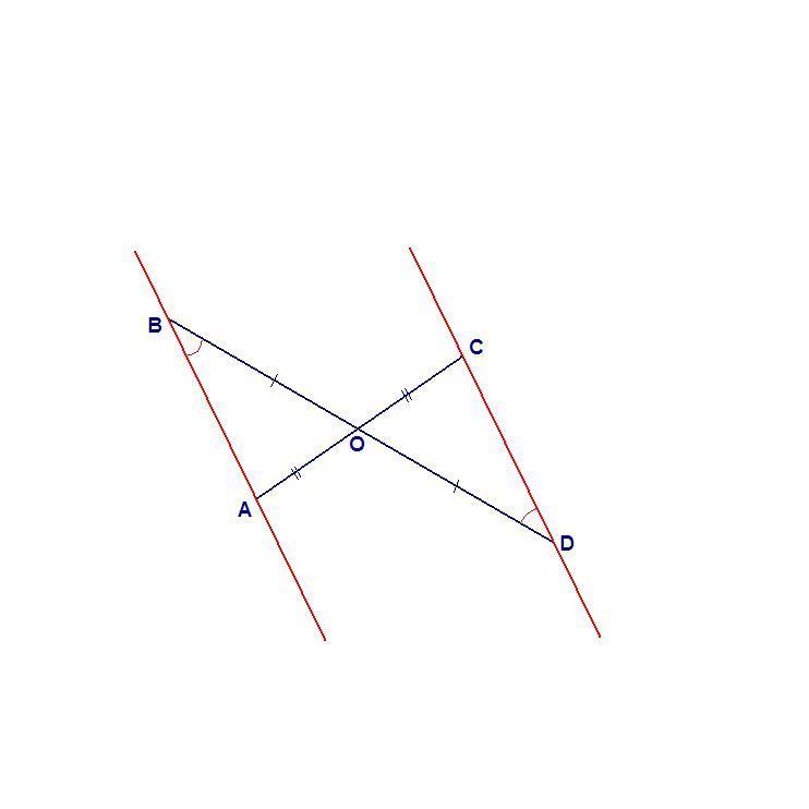 2.Отрезки AC и BD пересекаются в их общей середине точке O.Докажите,что прямые AB и CD параллельны