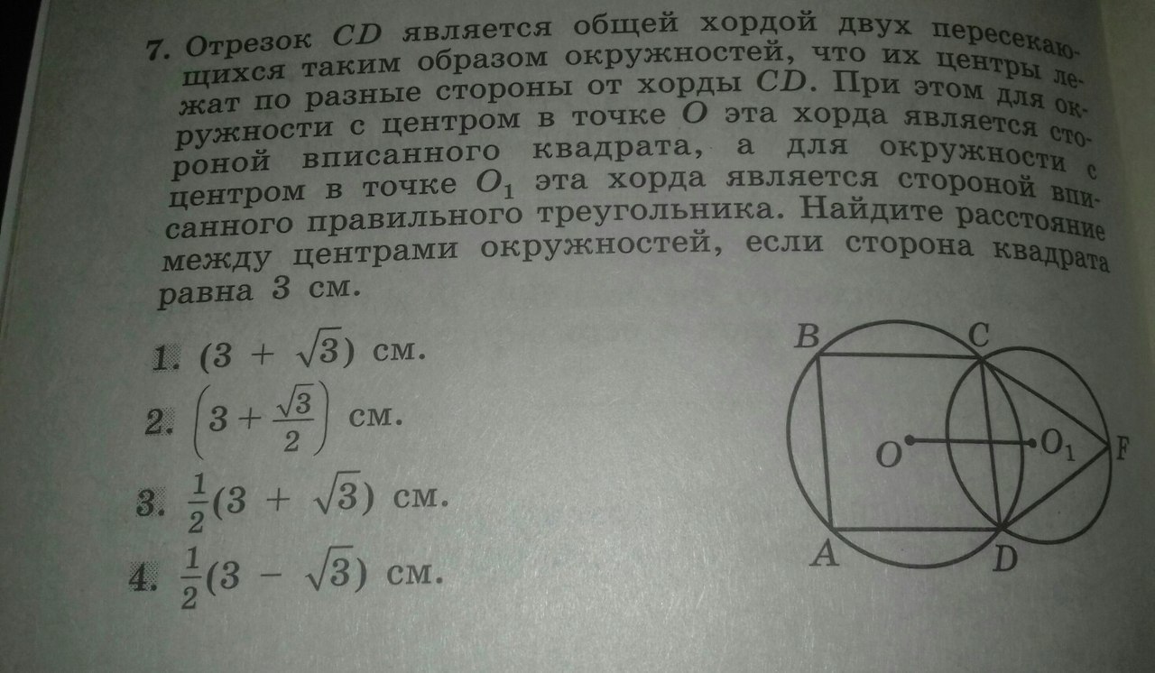 2. Радиус вписанной окружности в квадрат совпадает с точкой пересечения второй окружности и расстоянием между центрами окружностей.