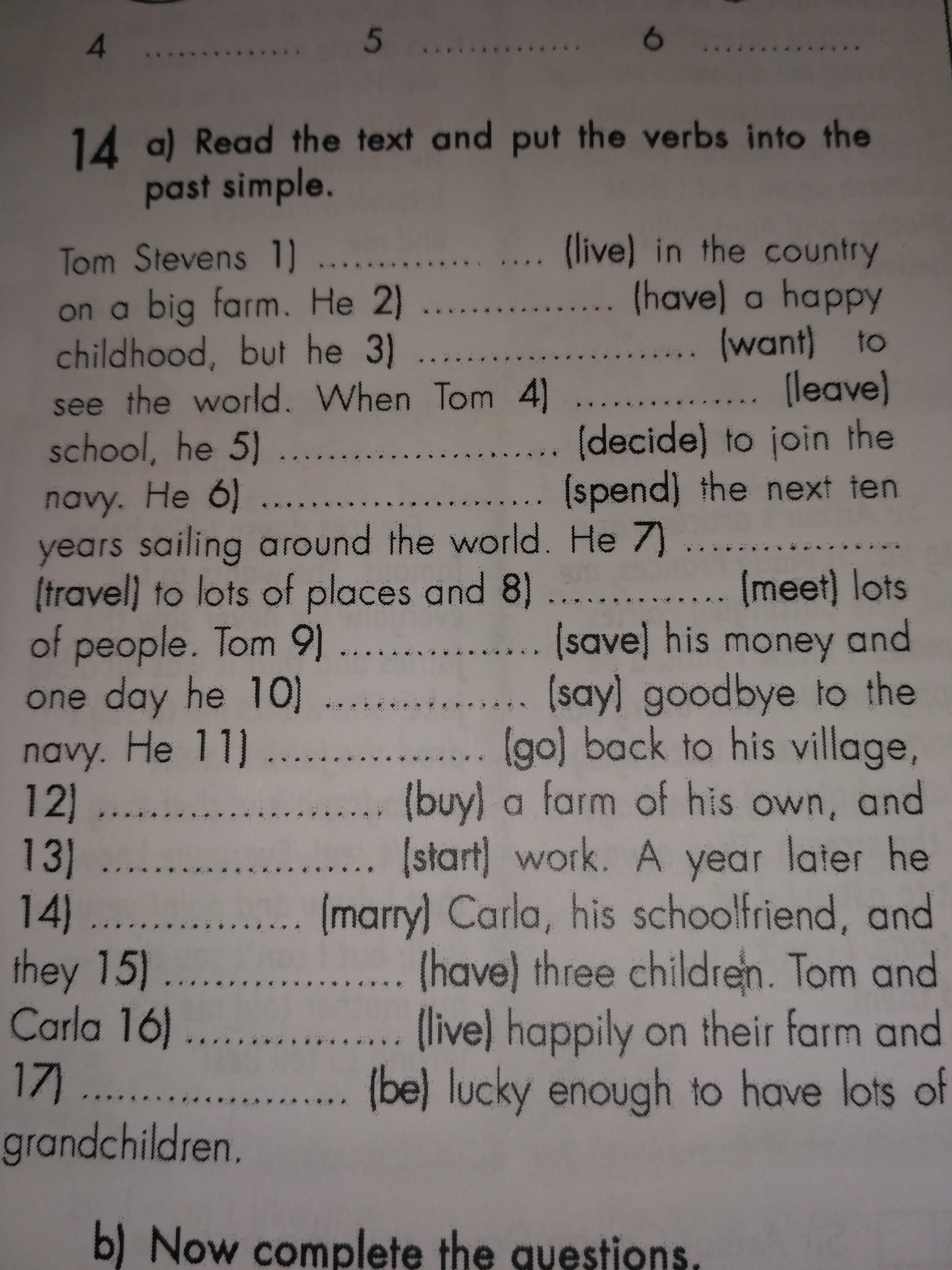 1 lived 2 had 3 wanted 4 left 5 decided 6 spent 7 traveled 8 met 9 saved 10 said 11 went 12 bought 13 started 14 married 15 had 16 lived 17 was