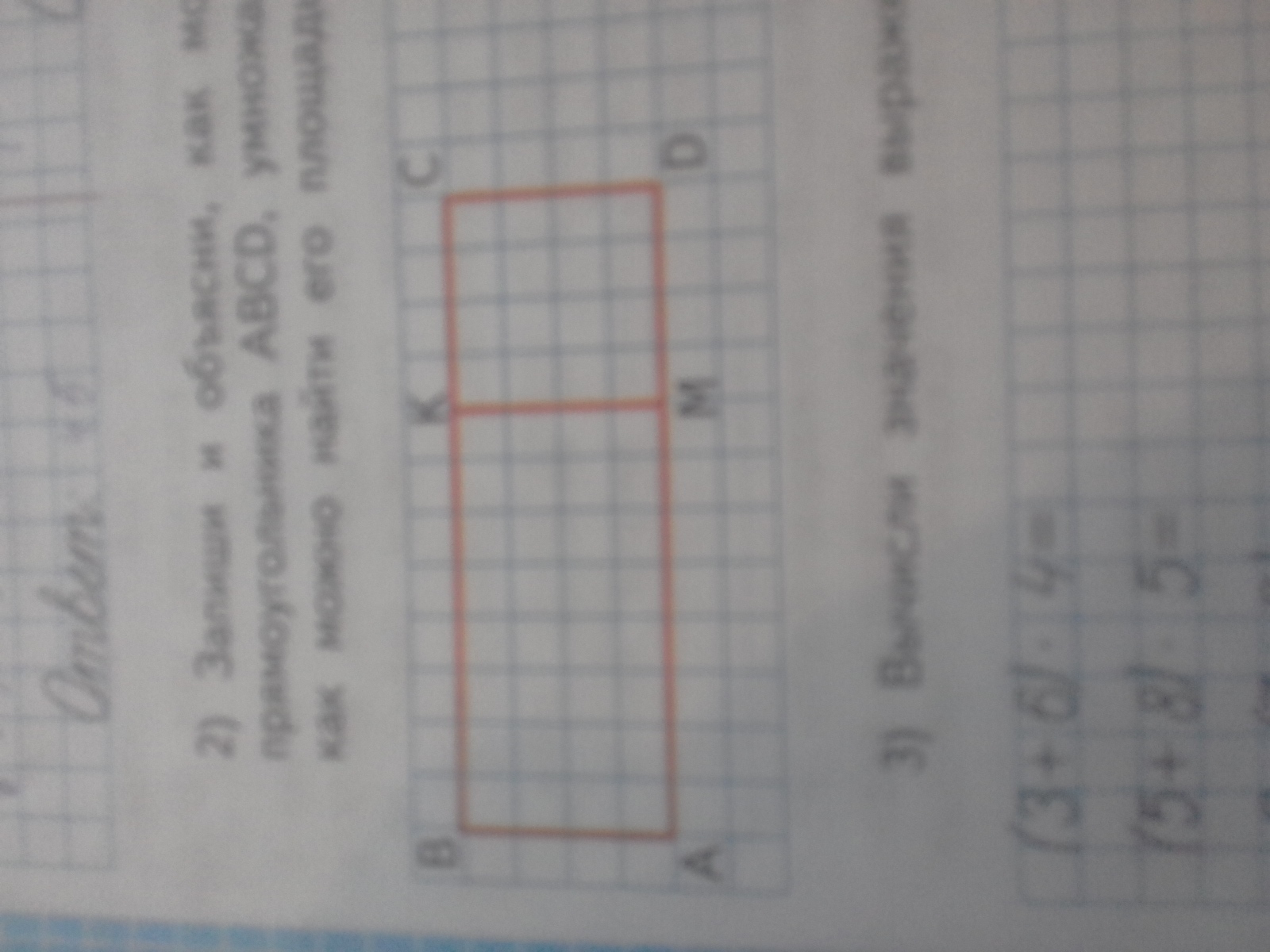 Запиши и объясни как можно найти площадь прямоугольника ABCD умножая сумму на число и как можно найти его площадь другим способом.