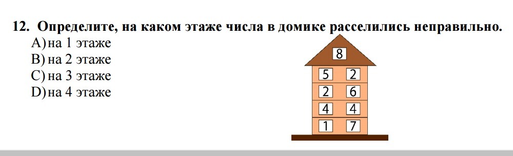 12. Определите, на каком этаже числа в домике расселились неправильно.