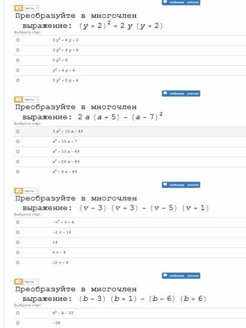 1) (y+2)^2 +2y(y+2)=y^2+4y+4+2y^2+4y= 3y^2+8y+4 - ответ (5)
