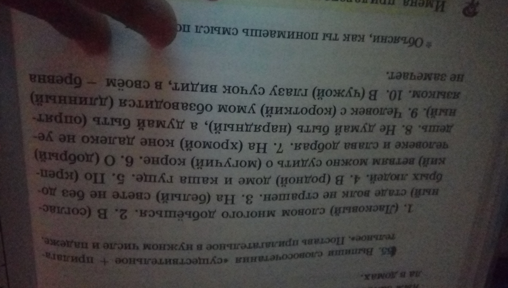 Ещё в этом упражнении даны два прилагательных в скобках, которые надо поставить в нужном числе и падеже, но они не входят в словосочетания, это слова: (нарядный)- нарядным( ставим слово в творительный падеж), и (опрятный)-опрятным(ставим слово в творительный падеж).