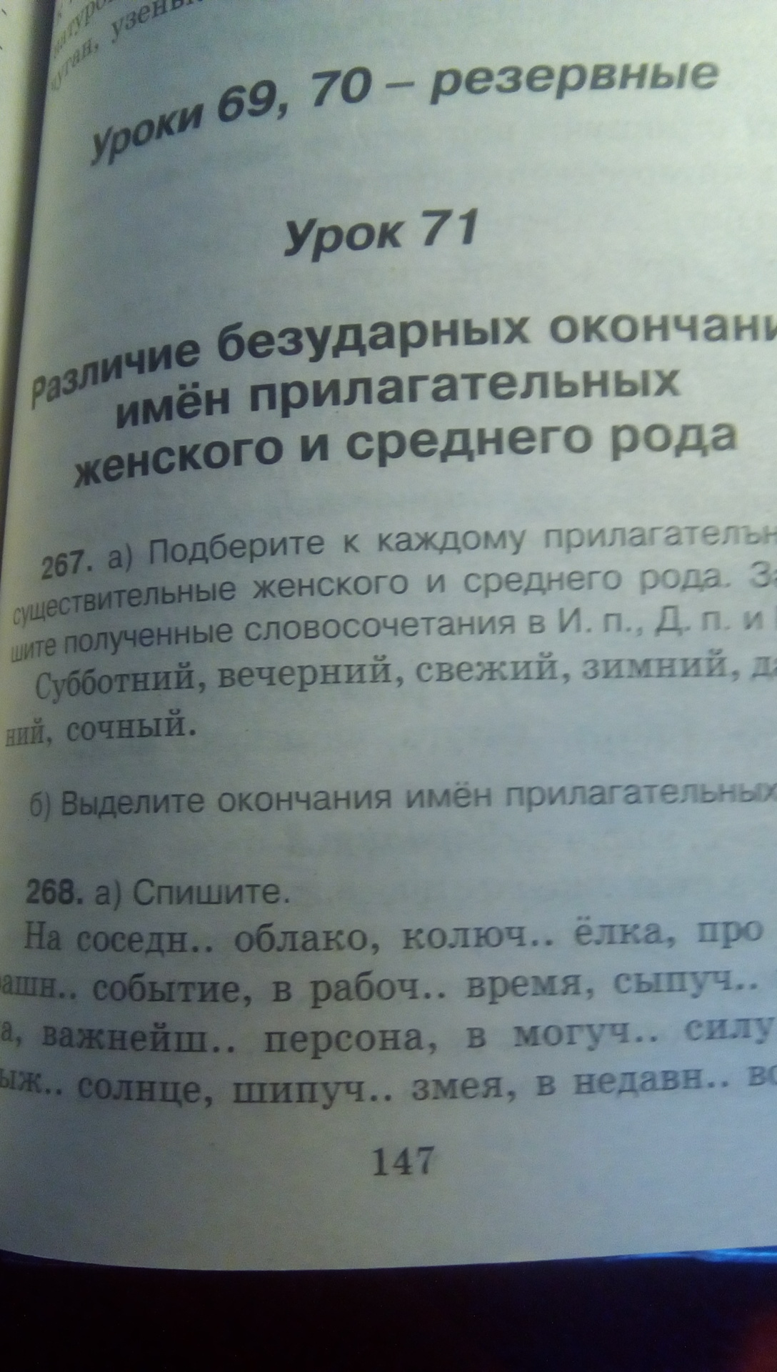 Субботняя прохлада (Им.п, окончания "яя" и "а"); субботней прохладе (Д.п, "ей" и "е")