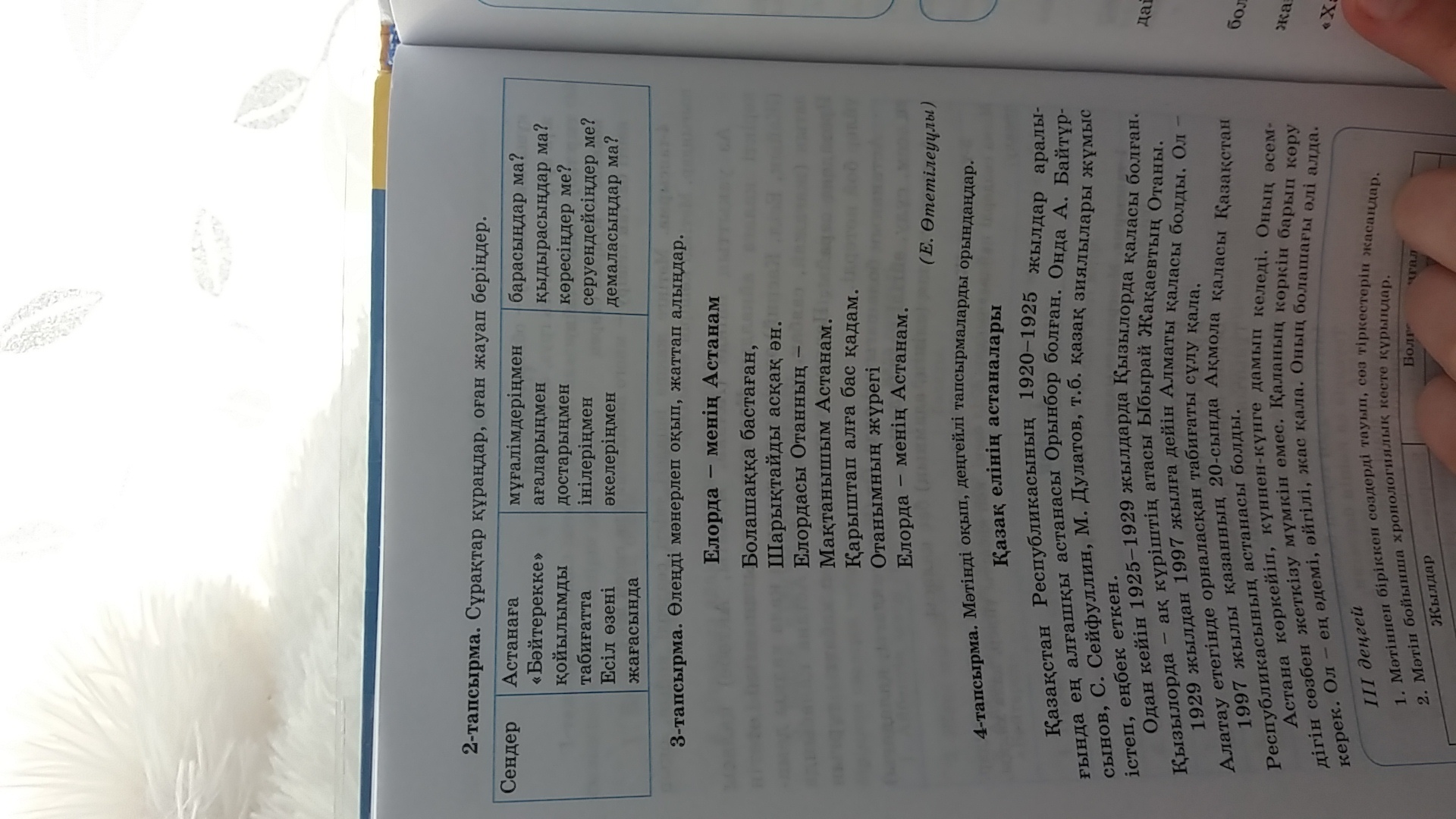 Сендер Астанаға мұғалімдеріңмен барасыңдар ма? Сендер бәйтерекке достарыңмен көресіңдер пе? Сендер қойылымды ағаларыңмен көресіңдер ме? Сендер табиғатта достарыңмен серуендейсіңдер ме?