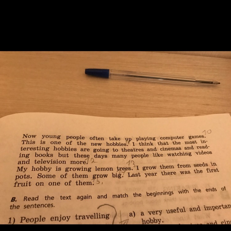 люди часто занимают играя в компьютерные Eemes. Это одна из новых hobbiea я думаю, что наиболее интерес- ными хобби собирается театры и кинотеатры и читать. книги, но многие люди, как смотреть видео дни и телевидение больше. Моя от растет лимонные деревья. Я выращиваю их из семян в горшках. Некоторые из них становятся большими. В прошлом году был первый плод на одном из них. 5,