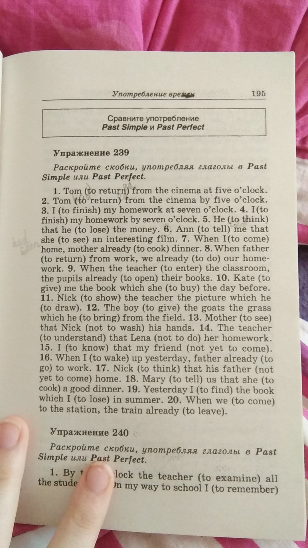 1 том (вернуть) из кино на пять часов2 том (вернуть) из кино на пять часов3. Я (до конца) свою домашнюю работу в семь часов. 4. Итоготово) мою домашнюю работу к семи часам. 5 Не (думать)что он (потерять) деньги. 6 Энн (сказать) мне, чтоона (посмотреть) интересный фильм. 7. Когда Ито пришел)домой, мать уже (приготовить) ужин. 8. Когда отец(вернуться) с работы, мы уже (делать) наш дом-работы. 9. Когда учитель (войти) в классе,ученики уже (открыть) свои книги. 10. Кейт (кдать) мне книгу, которую она (покупать) за день до.11 Ник (показать) учитель картина, которую он(нарисовать) 12 мальчик (отдавать) козлы травучто он (приносить) с поля. 13 мать (посмотреть)что ник (не мыть) руки. 14 учитель(чтобы понять), что Лена (не делать) домашнее задание15. Я (знать), что мой друг (еще не пришло)16 когда я (проснуться) вчера, отец уже (видет). 17. Ник (думать), что его отец (нееще впереди) домой. 18 Мария (сказать), что она (вготовить) хороший ужин. 19. Я вчера (найти) книгучто я (потерять) в летнее время. 20. Когда мы (приехать)в ст