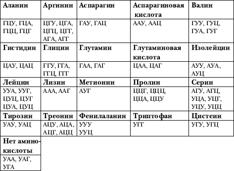 иРНК УУУ ГУГ ГГА ГЦА АЦА