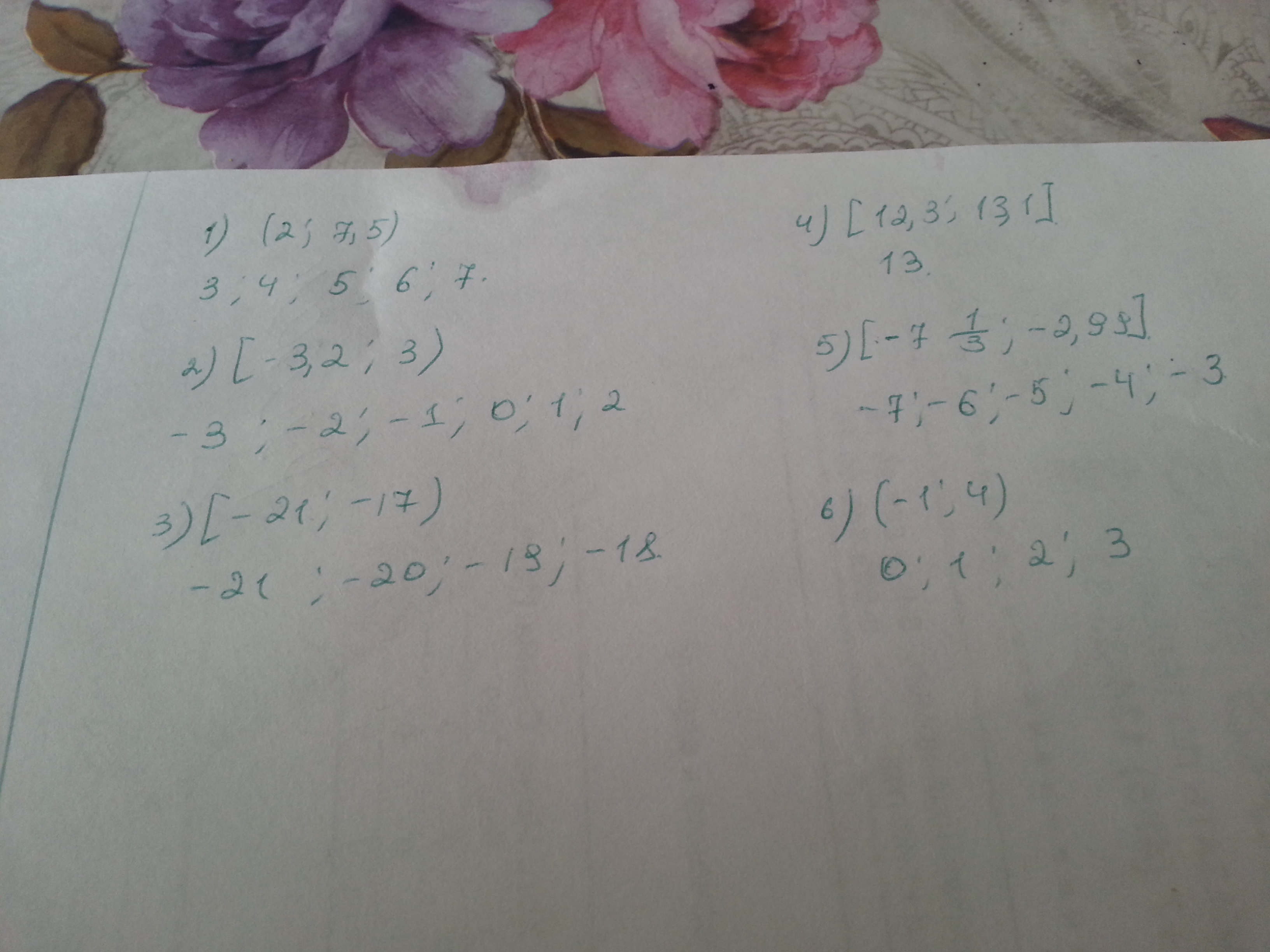 4)[12,3; 13,1] 5)[-7 1/3-2,99] 6)(-1; 4)