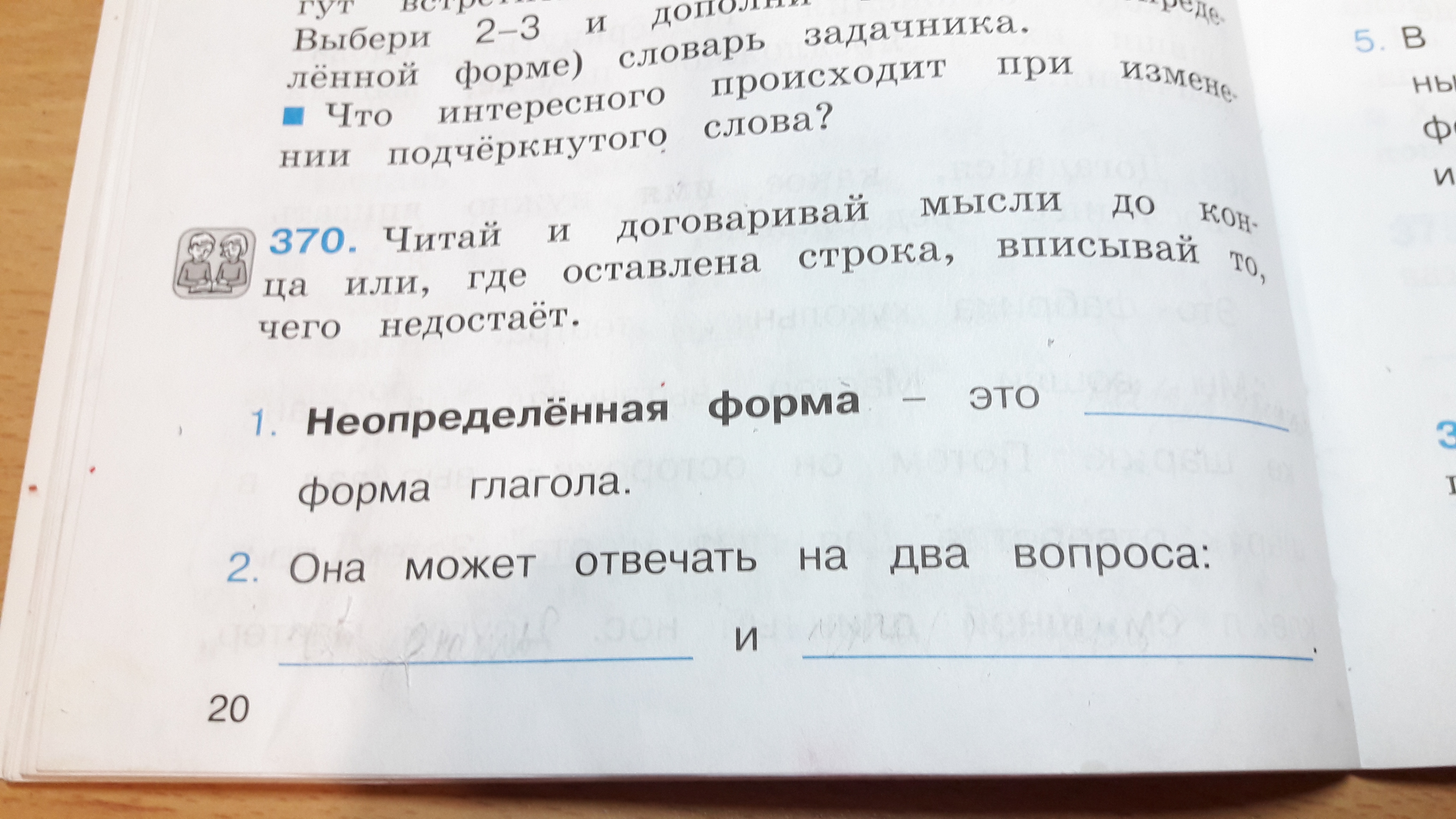 Читай и договаривай мысли до конца или, где оставлена строка, вписывай то, чего недостаёт.