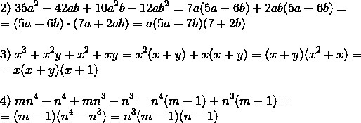 Разложите на множители : 2) 35а^2-42аб+10а^2 б -12аб^2.