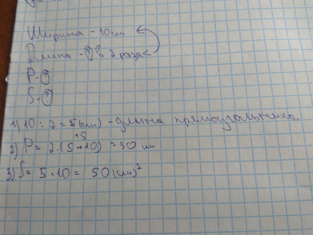 P=(a+b)*2 P=(10+20)*2 P=60см